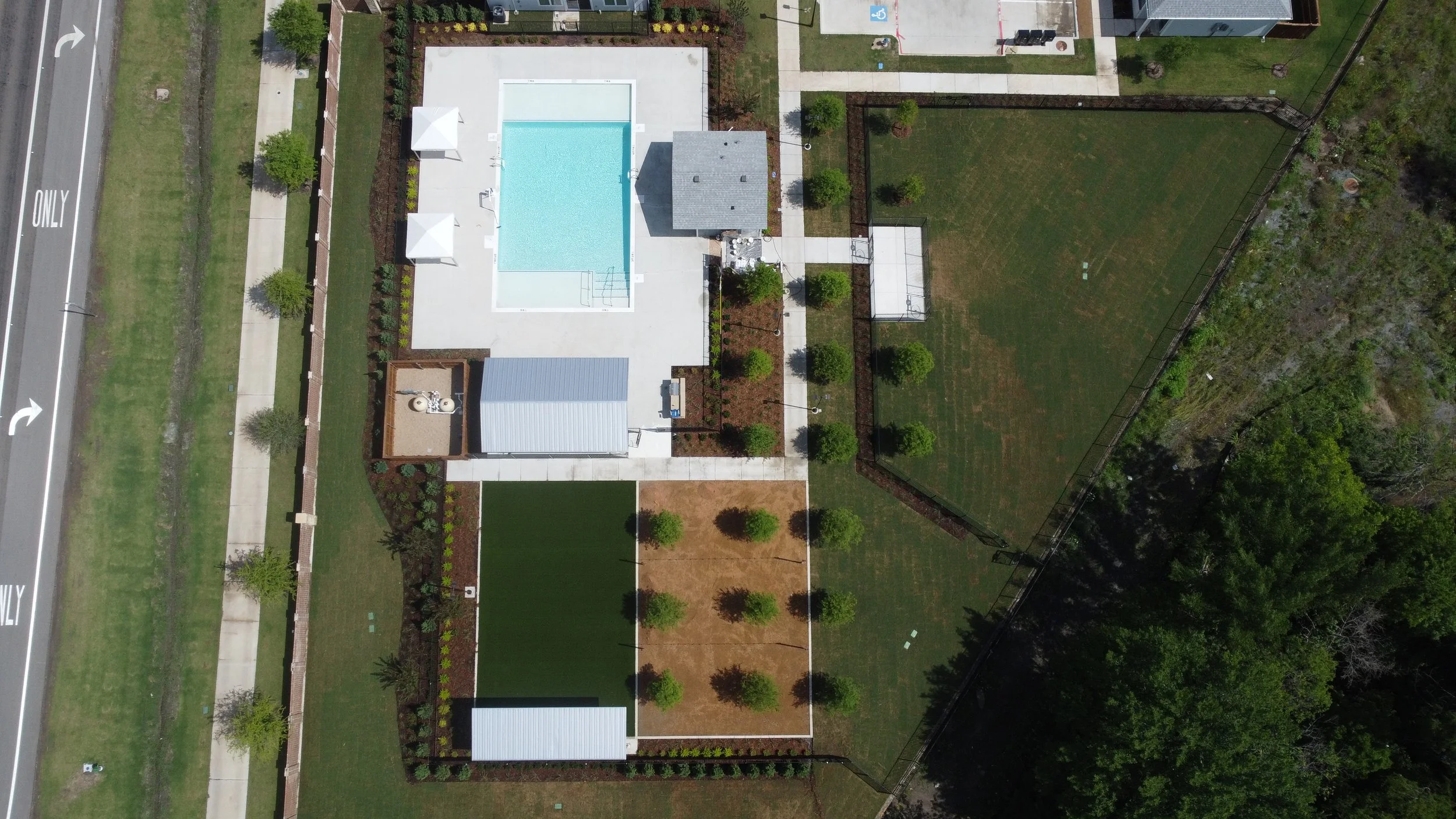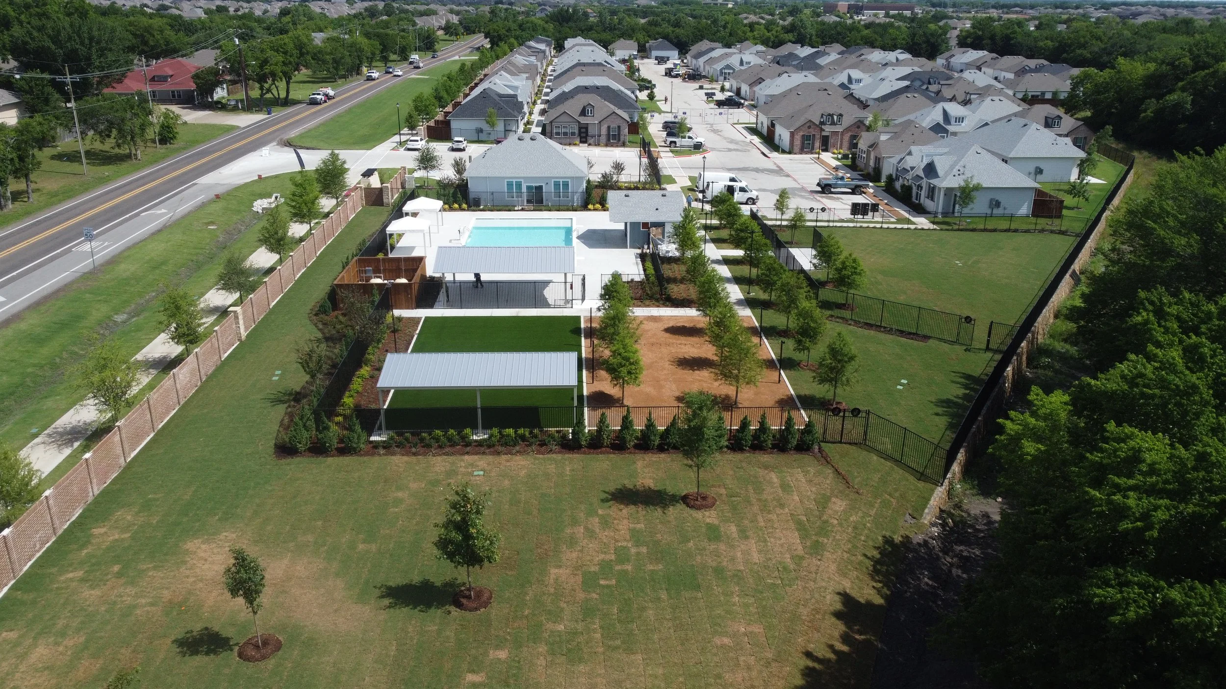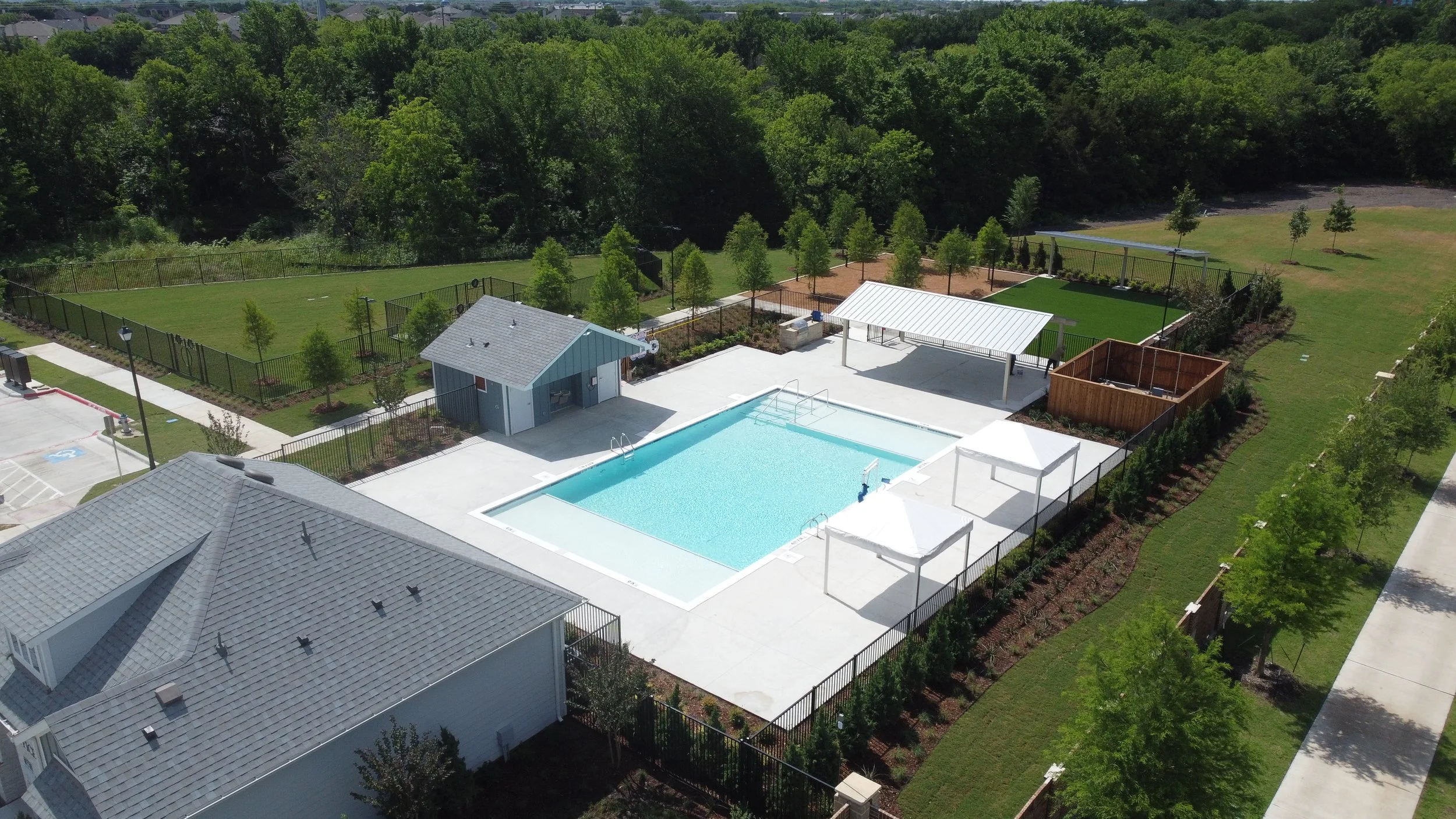 Woodcreek SFR Amenity Center includes a Maintenance Building, Restroom Facility, Swimming Pool, Shade Structures, Lighted Event Lawn and Dog Park.